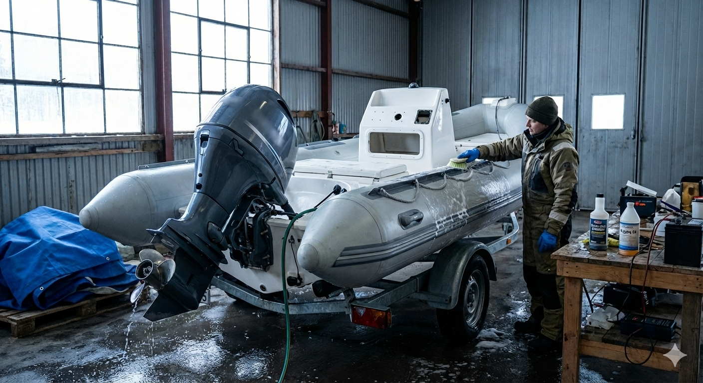 Le nettoyage est une étape clé de l’hivernage du semi-rigide.